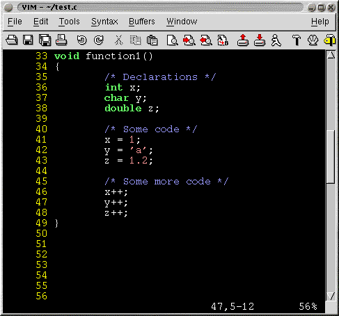Another set of keys which are useful are the [[ and ]] keys. These keys allow you to jump to the previous { or next { in the first column.