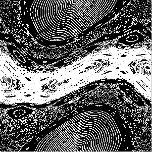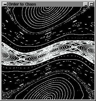 In diesem Fall der Standard Abbildung wird z.B. die Spur eines geladenen Teilchens in einem Teilchenbeschleuniger beschrieben. Die Koordinaten geben an, an welchen Stellen das Teilchen die Schnittebenen des Beschleunigertoruses durchquert. Die Untersuchungen dieser und anderer chaotischen Abbildungen sind in der Physik wichtig, um die Stabilität von Trajektorien (in diesem Fall der Teilchenbahn im Zyklotron) zu verstehen. Die Standard Abbildung ist deshalb besonders interessant, weil für bestimmte Werte von K deutlich sowohl choatisches als auch nicht-chaotisches Verhalten beobachtet wird. Auch wenn man nicht wirklich an der Physik interessiert ist, sollte man diesen Abbildungen und ihren Eigenschaften etwas Aufmerksamkeit schenken, da sich schöne, fraktale Bilder erzeugen lassen. Mit fraktalen Algorithmen, die auf chaotischen Abbildungen basieren, lassen sich z.B. Strukturen, Flammenbilder , Bäume, Landschaften und andere Texturen erzeugen.