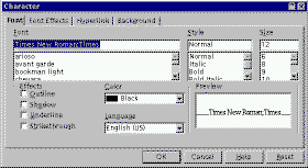 Эти и другие аттрибуты можно изменить из контекстного меню. Из панели меню (Format > Character) Вы можете заказать пиво и бифштекс, но говоря о StarOffice, Вы должны отказаться от мысли открыть диалоговое окно, в котором у Вас будет доступ к каждому аттрибуту. Ничто не упущено при создании инструментов форматирования абзаца. В объектной панели, рядом с кнопками установки аттрибутов шрифта - полужирный, наклонный и т.д., есть еще один набор кнопок, используемый для выравнивания текста, создания нумерованных или обычных списков и установки отступа. Аттрибуты абзаца также можно изменить из контекстного меню и из панели меню. Управление точками табуляции выполнено в точности как в Word: использована горизонтальная линейка.
