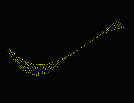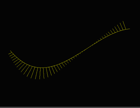 Dann werden die "Porcupine"-Linien entlang der Kurve gezeichnet. Die Anzahl der "Porcupine"-Linien kann vom Benutzer verändert werden, und ohne den Hintergrund oder die Punkte zu verändern, kann die neue Menge an "Porcupine"-Linien entlang der gleichen Kurve gezeichnet werden.