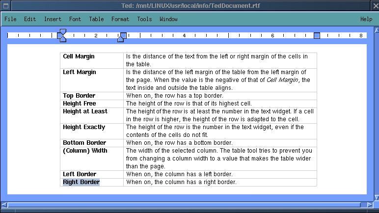 Afbeelding 8: Een tabel in Ted. Klik op de afbeelding voor een groter formaat.
